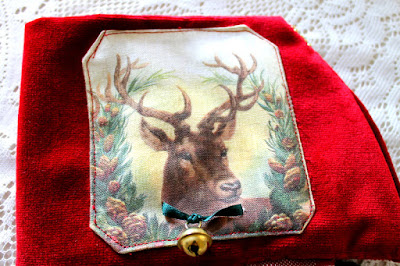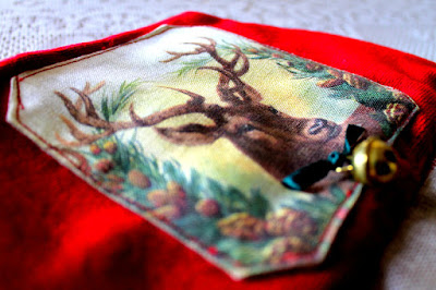 Il bordo alto in velluto di seta rosso incornicia una renna al cui collo ho appeso un tintinnante campanellino di buon auspicio