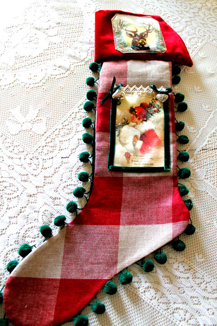 Home for the Holiday e' il titolo di questa calza dove ho messo il cuore...si anche perche' era' il mio desiderio di Natale ma non ho potuto realizzarlo...pero' la calza lo racconta nel modo migliore e piu' vintage