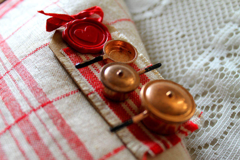 I piccoli pentolini e formine sono in rame ed appartengono ad una collezione tedesca